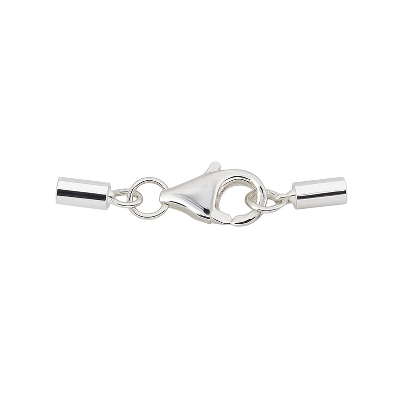 Dette sæt består af to endestykker og en karabinlås i 925 sterling sølv, så du hurtigt kan lave en pæn afslutning på et armbånd eller en halskæde. Endestykkerne er lavet som små rør, hvor snor eller kæde kan limes fast, så samlingen bliver skjult og smykket får et mere færdigt udtryk.