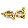 Her får du 2 stk guldfarvede fjederlåse i 304 rustfrit stål med ion plating overflade. De er større end de helt små standardlåse og passer godt til lidt kraftigere kæder og snore.