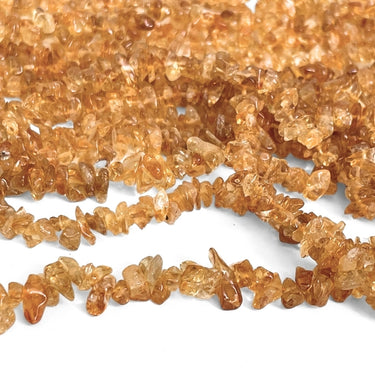 Denne streng består af små chips af citrin, der varierer i form og størrelse. Farverne spænder fra en lys, gennemsigtig gul til en dybere gylden nuance, hvilket giver et varmt og levende spil i smykket. De små stykker gør strengen velegnet til fine detaljer eller til at give et strejf af farve i kombination med andre materialer.