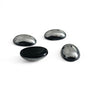 Hæmatit er en tung og tæt sten med en helt glat, metallisk overflade, der næsten føles kølig at røre ved. Den mørke sølvgrå farve giver et roligt, neutralt udtryk, som passer ind i både klassiske og moderne smykker. Disse cabochoner er slebet flade på bagsiden, så de nemt kan limes i en fatning eller på metalplader.