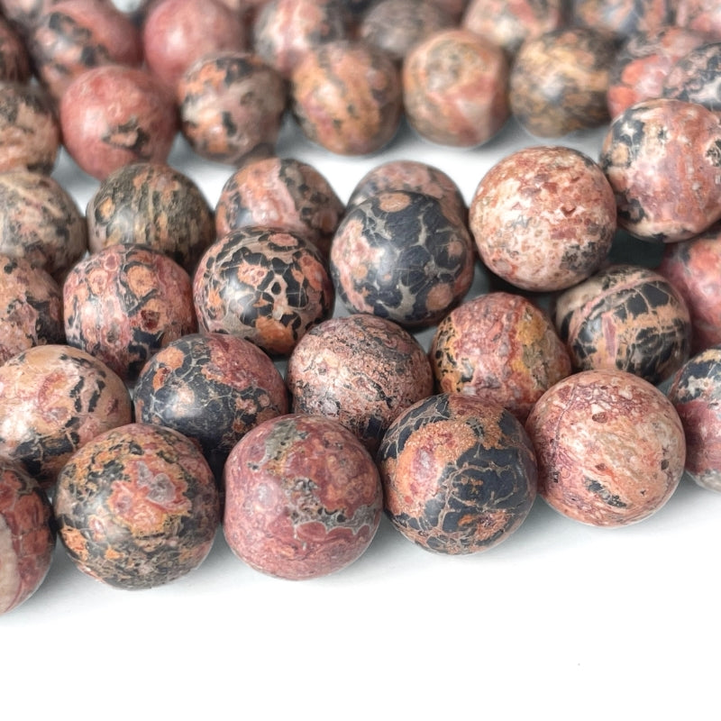 De store 12 mm perler i leopardskinds jaspis bringer en markant og naturlig energi ind i dine smykkedesigns. Farverne spænder fra støvet rød til sort og lys beige – et farvespil, der leder tankerne hen på vild natur og rå skønhed. Disse perler er oplagte til kraftfulde halskæder, lange malas eller i designs, hvor én perle må fylde og tiltrække blikket.