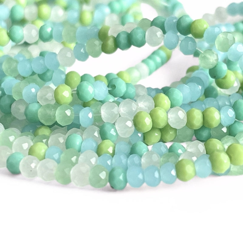 Facetslebne glasperler – grøn, hvid og turkis mix 3x2 mm