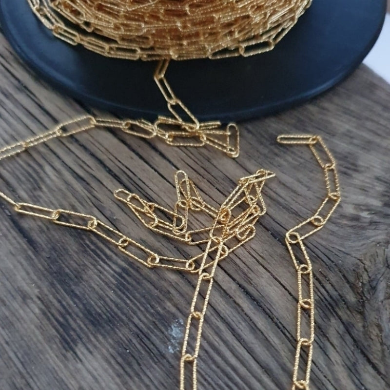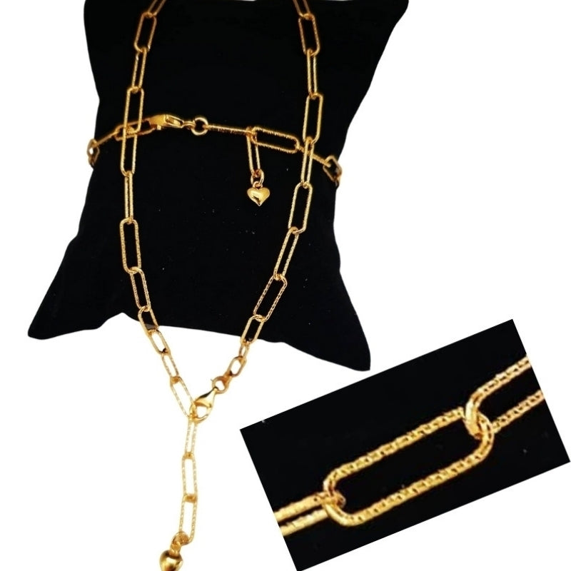 Forgyldt armbånd med lange led og hjerte vedhæng