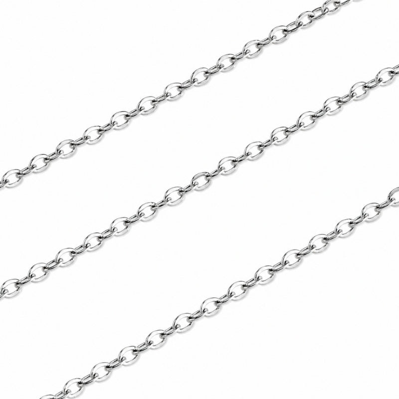 Denne forsølvede smykkekæde er en fin og alsidig kæde til halskæder, armbånd, kædeøreringe og mange andre smykkeprojekter. Den enkle kæde passer godt både alene og sammen med vedhæng, charms eller perler.