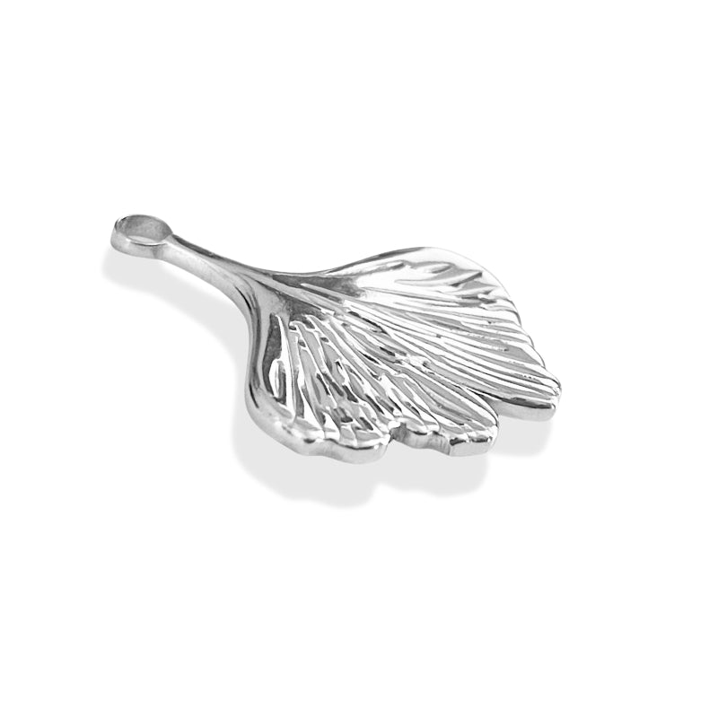 🌿 Smukt Ginkgo blad vedhæng i rustfri stål. Formen er inspireret af det karakteristiske Ginkgo blad og egner sig perfekt til både øreringe og halskæder. Brug det alene som blikfang eller kombiner det med andre vedhæng for et personligt udtryk.