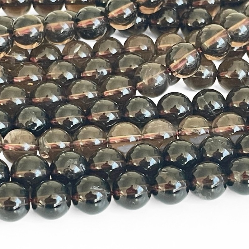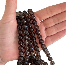 10 mm Røgkvarts perler - Hel streng