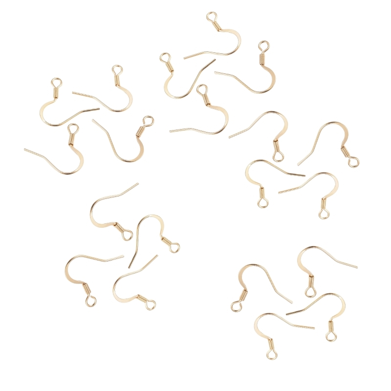 Lavet i rustfri stål der er forgyldt med ægte 18K guld. Ørekrogene måler ca. 17 mm i længden og har en trådtykkelse på ca. 0,7 mm – nemme at arbejde med og behagelige at bære i øret.