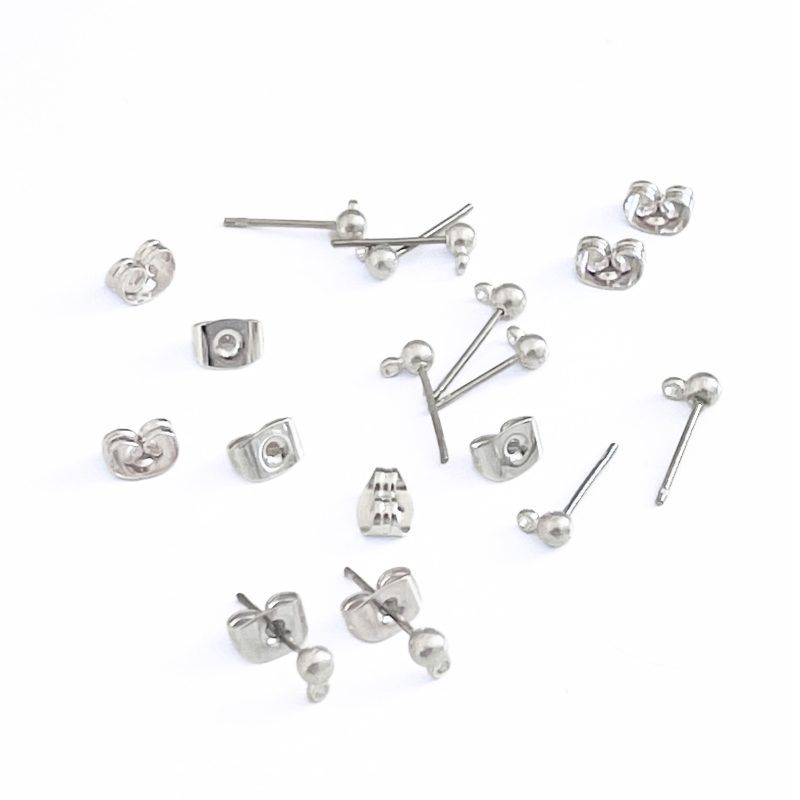 Her får du et sæt helt enkle ørestikker med en lille kugle foran og et diskret ring-øje under kuglen. Ringen gør det nemt at hænge små perler, charms eller andre små vedhæng på, uden at der skal bruges ekstra dele. Kuglen foran giver et roligt udtryk, så stikkeren både kan bruges alene eller som base for noget mere dekorativt. Bagsiden passer til almindelige bagstoppere, og der medfølger 10 komplette sæt, så der er nok til flere små projekter eller til at lave matchende par.