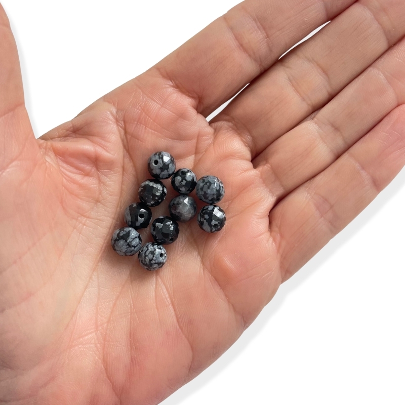 10 stk. 8 mm Snowflake Obsidian Facet perler