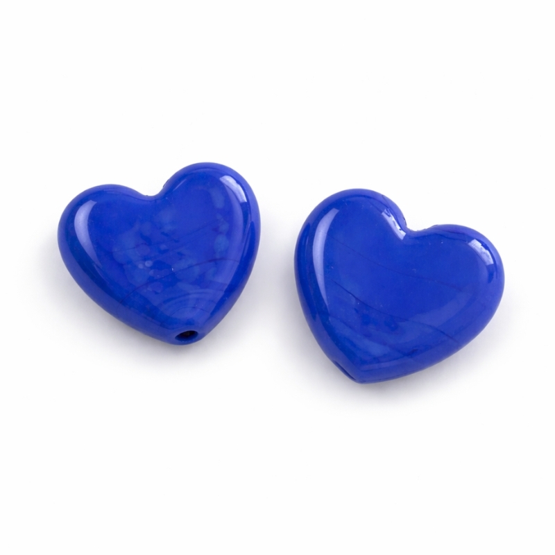 Perlerne sælges i poser med 2 stk. og er oplagte til mindre projekter eller når du mangler et par markante hjerter i en dyb blå farve.