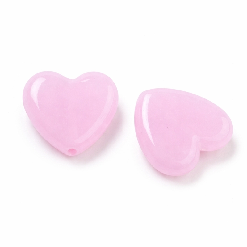 Hullet går lodret gennem perlen, så hjertet hænger rigtigt, når det bruges som vedhæng. De fungerer godt sammen med både elastik, smykkewire, kæde og snor. Størrelsen gør dem tydelige uden at virke tunge, og de passer fint til både enkle smykker og mere legende designs – også til børnesmykker.