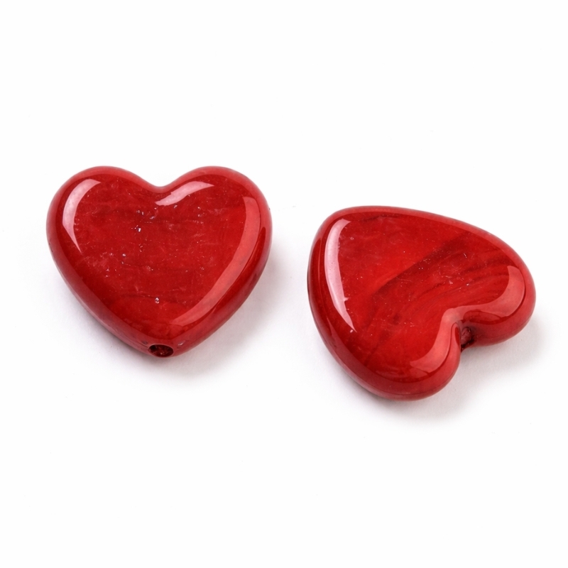 Hullet går lodret gennem perlen, så hjertet hænger rigtigt, når det bruges som vedhæng. De kan bruges med elastik, smykkewire, kæde eller snor, alt efter hvilket udtryk du ønsker. Størrelsen gør dem oplagte som fokuspunkt i både armbånd og halskæder uden at blive tunge eller klodsede.