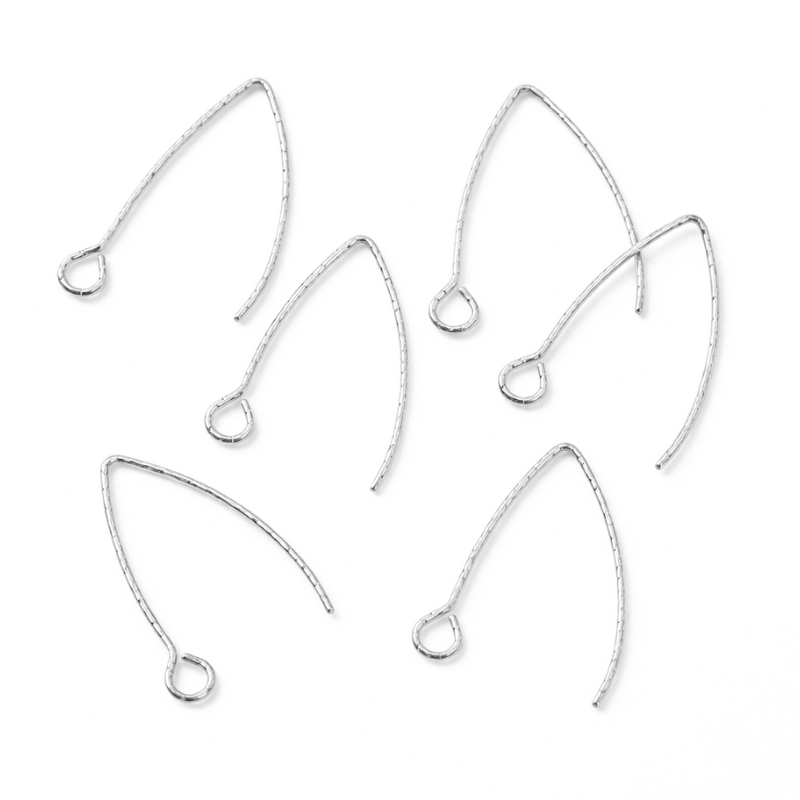 Overfladen har en flot struktur, som giver et mere levende udtryk end helt glatte ørekroge. Det passer godt til både enkle designs og mere rå eller håndlavede udtryk. Ørekrogene sælges i poser med 6 stk., så du har nok til tre par øreringe eller lidt ekstra til dine projekter.