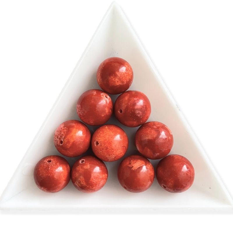 Skumkoral er ikke ægte koral fra havet, men en type kalksten, som er blevet farvet og behandlet. Det gør den til et mere bæredygtigt alternativ med samme visuelle effekt som klassisk koral – bare uden at skade havmiljøet. Perlerne har en lethed over sig og en lidt vintage-agtig fornemmelse, som gør dem nemme at bruge i mange forskellige typer smykker.