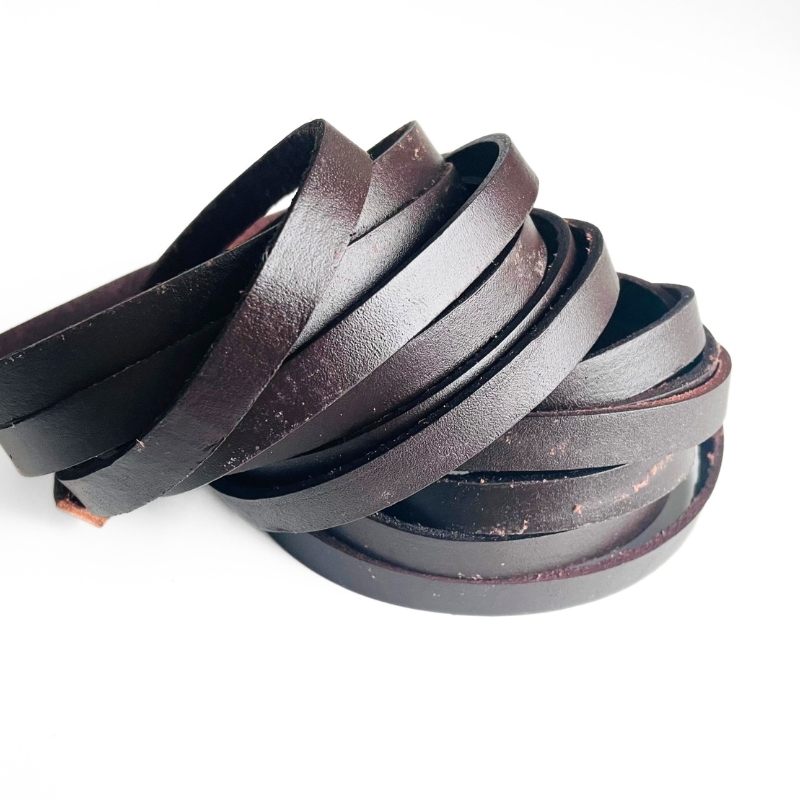 Denne lædersnor er skåret af kraftigt læder, som har bevaret sin naturlige struktur og farvespil. Den mørkebrune farve har en varm tone med små nuancer, der ændrer sig lidt med lyset. Perfekt til dig, der kan lide et lidt råt udtryk frem for noget fabriksensartet. Brug den til armbånd, nøgleringe eller detaljer på tasker – den giver et råt og naturligt udtryk.