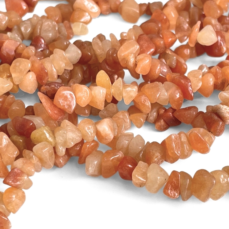 Strengen består af små stykker rød agat, hvor farverne varierer fra lys orange til dybere rødbrune nuancer. De uens former giver et naturligt og levende udtryk, hvor ingen perle er helt ens. Dette gør strengen alsidig, både til enkle smykker eller som indslag i designs med flere stentyper.