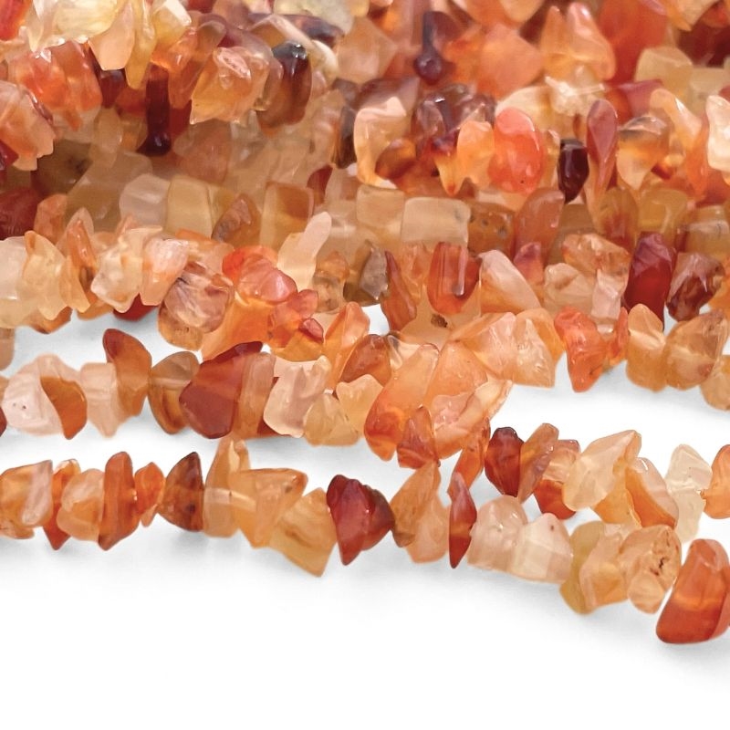 Carneol er en klassiker inden for natursten, kendt for sine varme farver, der kan spænde fra lys orange til dybere rødbrune toner. De mange variationer i hver streng gør, at smykker aldrig bliver ens, men i stedet får et levende og dynamisk udtryk. Perlerne er uens i størrelse og form, hvilket giver et råt og naturligt præg, når de bruges i smykker.