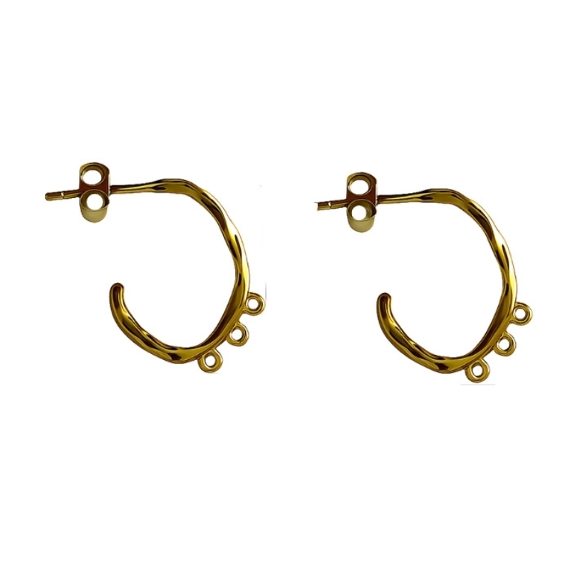 Disse smukke forgyldte sterling sølv creoler kombinerer elegance og et unikt banket mønster. Den åbne C-formede ørering gør dem til et stilfuldt valg. De 3 små øjer giver mulighed for at tilføje ekstra detaljer, som f.eks kæder, charms eller perler, for et personligt design