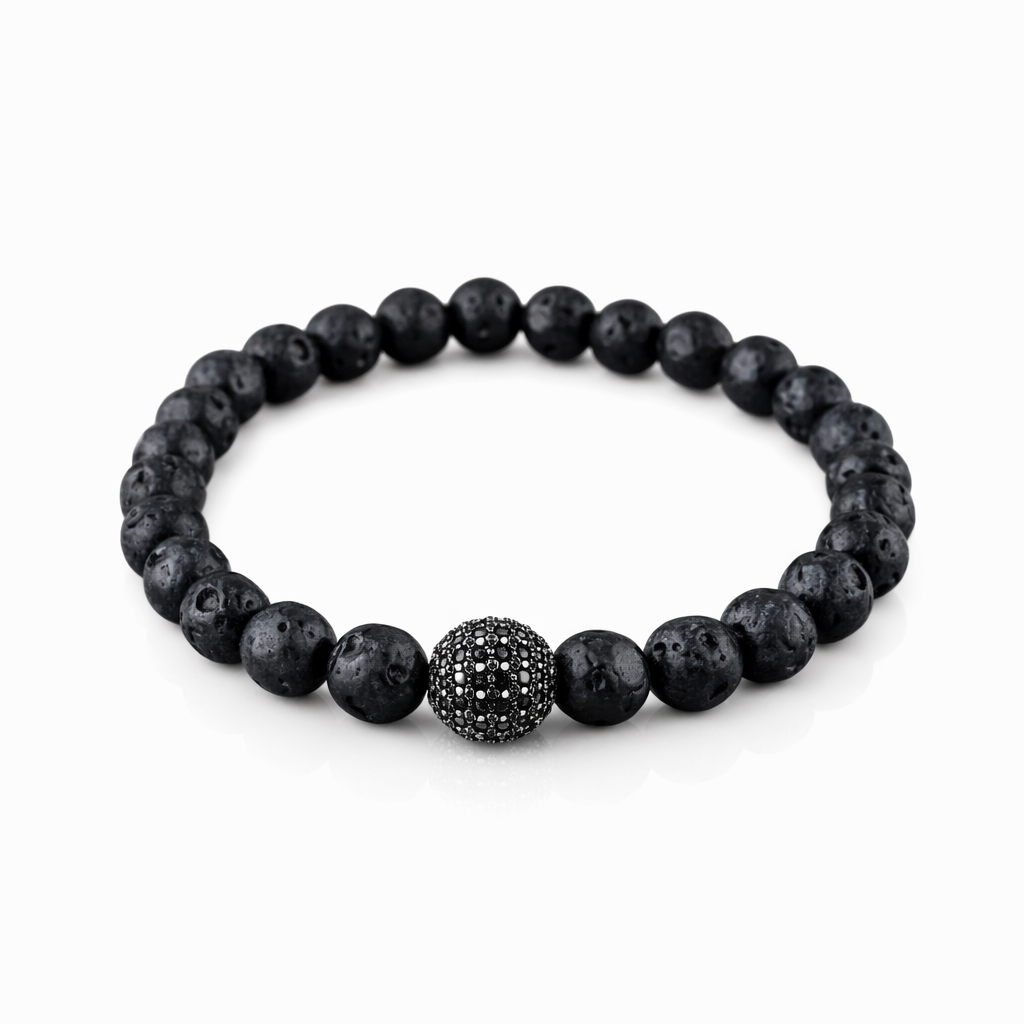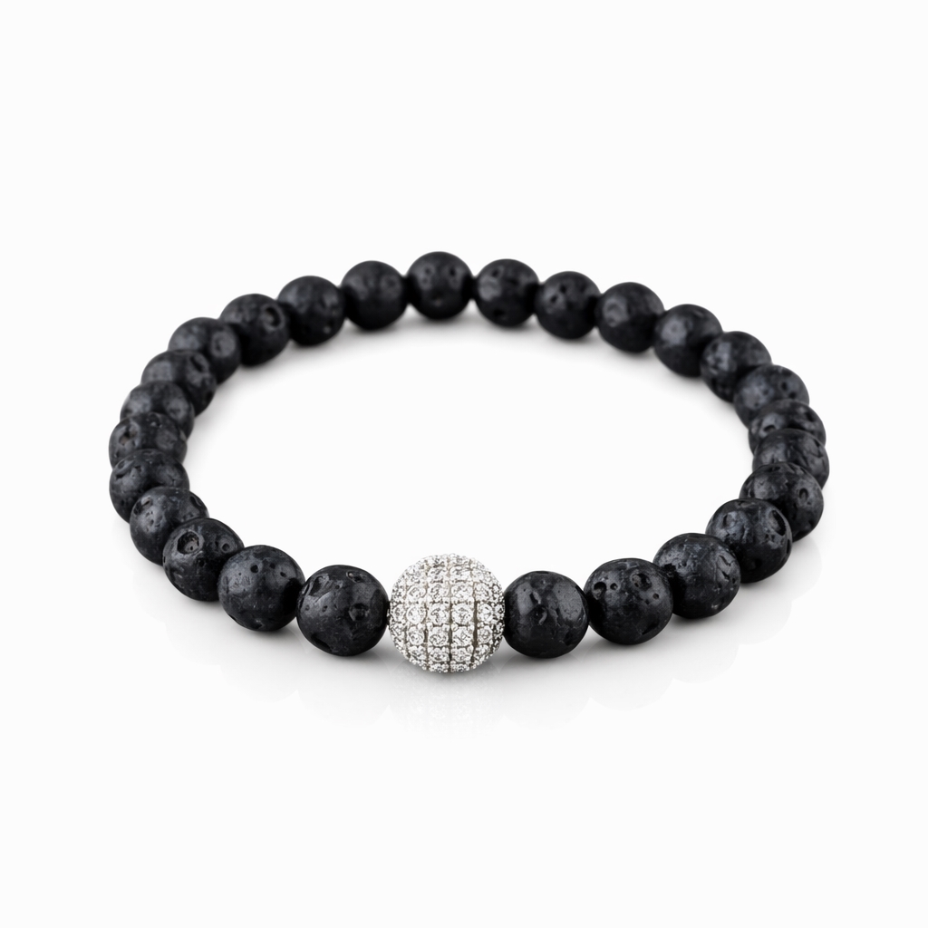 Armbånd med lavaperler og sølvperle med CZ sten