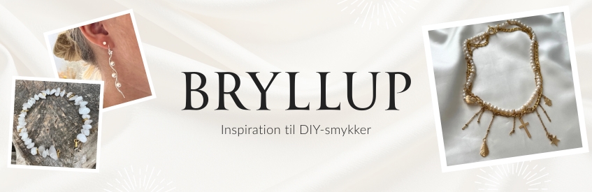 Bryllupssmykker kommer i mange former og hvad det lige betyder, bestemmer du heldigvis selv. Vi anser bryllupssmykker, som alle de smykker, dagens hovedpersoner og gæster måtte bære og her er der rig mulighed for at lave noget, kun til jer. Til bruden og gommen kan I, i stedet for at købe færdige smykker, lave noget, som med farver, form eller materiale forbinder smykkerne med dagen og brudeparret. Armbånd: Den sikre vinder som brullupssmykkeSkal den nærmeste familie, brudepigerne eller alle gæster have en souvenir med, kan man f.eks. lave ens armbånd enten med glideknude (Macramé) eller elastiksnor, så de passer på alles håndled fordi de af natur er justerbare. En lidt dyrere løsning er lave ekstra lange armbånd med forlængerkæder og almindelig lås, hvor bæreren af bryllupssmykket så blot sætter låsen så den passer. Det giver et lille ekstra stykke kæde, som ikke alle synes er pænt eller kan virke irritierende. Alternativt (og meget billigere) kan man blot lave armbånd af stof eller læder, som bindes sammen med en knude. Halskæder kan bæres af alleHalskæder er ligeledes et solidt valg af bryllupssmykke, da de let passer på alle og er nemme at lave. Det gælder især hvis I blot vælger en smykkekæde med lås med et løsthængende vedhæng på. Så er det bare to ting der lige skal sættes sammen og puttes i en pose eller lignende. I forhold til længden på kæderne, så skal de naturligvis passe til dem der skal gå med den. Den nemme løsning er at vælge en 50 cm kæde til alle. Hvis du vælger en flad ankerkæde, så kan længden nemt justeres ved at sætte låsen i et passende hul, skal det være mere præcist, så er her ca. halsomkreds efter køn/alder (husk lige at tilhøje 5 cm, så gæsterne ikke bliver kvalt):