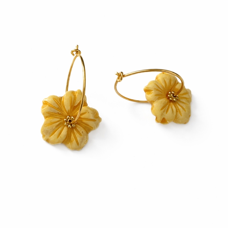 Forgyldt creol med gul perlemorsblomst og lille forgyldt mellem perle.