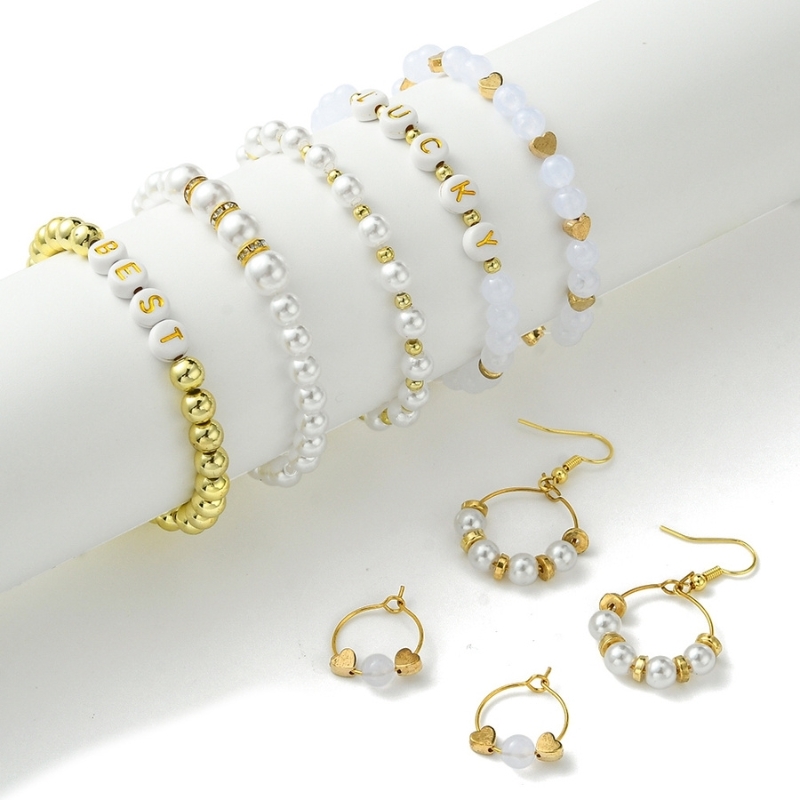 lav selv armbånd og øreringe sætsmykkesæt med elastiksnor og bogstavperler