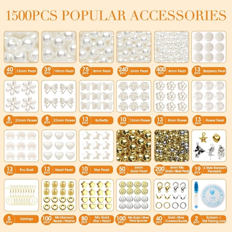 ✅ Indeholder: Ca. 1500 dele i alt med perler, øreringe, smykkedele.