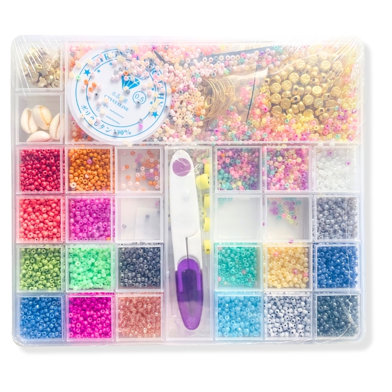 ✅ Indeholder: Perler, elastiktråd, små dele og værktøj