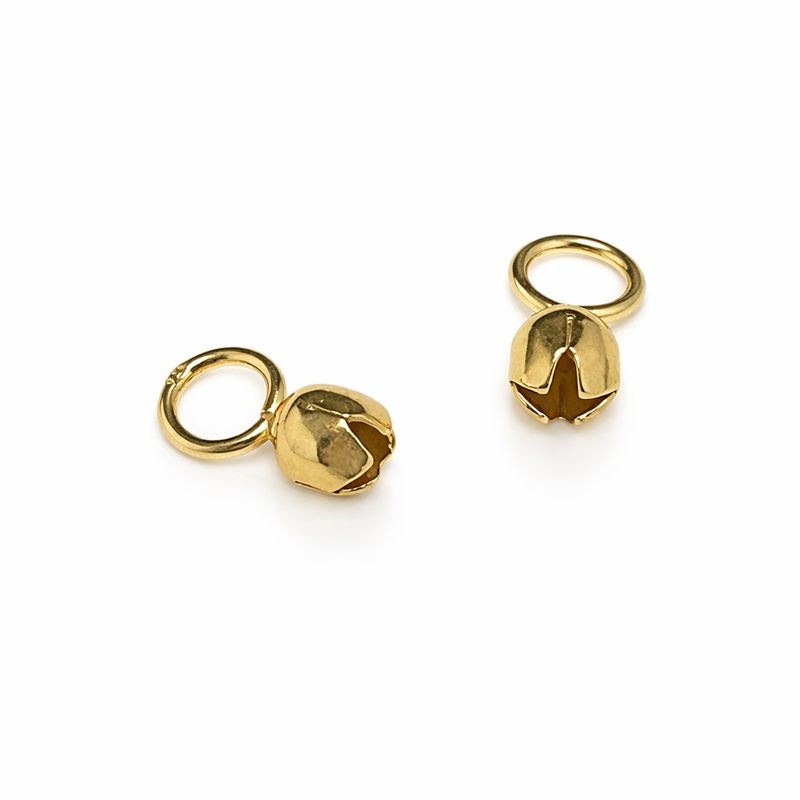 En nem løsning til at give dit smykke en pæn og diskret afslutning. Den lille kugle åbnes let, så du kan placere en knude eller wireklemme indeni, og derefter lukke den forsigtigt sammen. Når den er lukket, ligner den en almindelig perle og skjuler helt det tekniske afslutningspunkt. De fungerer godt både til smykker lavet med wire og til snore med knude. Den faste øsken i toppen gør det nemt at sætte en lås, ring eller andet vedhæng fast. De er nemme at bruge og sidder godt, når først de er lukket rigtigt. Passer især godt til designs hvor du gerne vil have et enkelt og rent look – uden at knuder eller wireklemmer stjæler opmærksomheden.