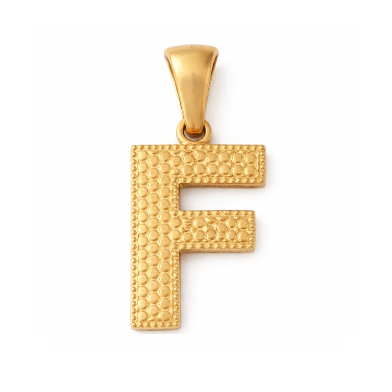 Vedhæng med bogstav F – gyldent rustfrit stål