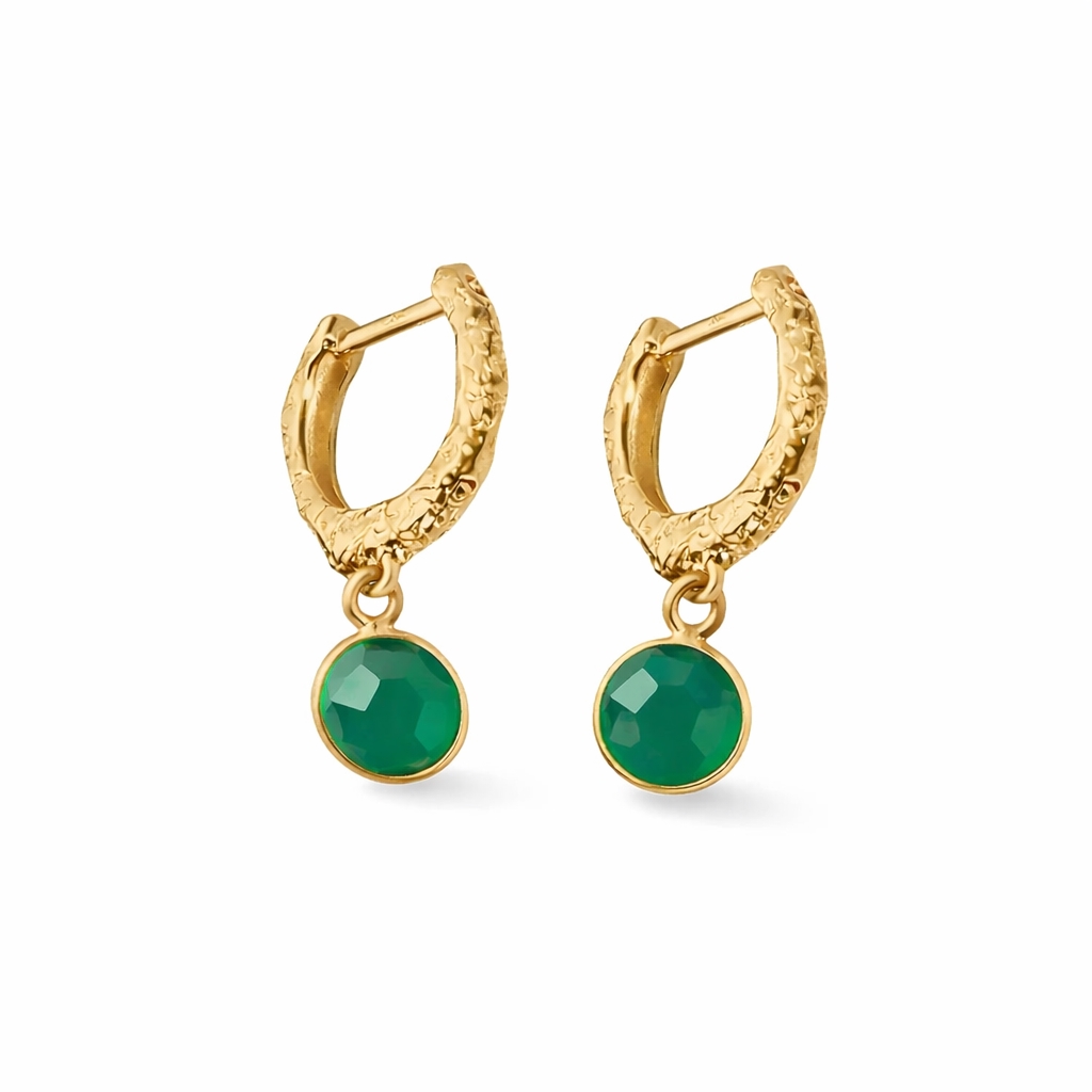 Forgyldt sterling sølv kliklås ørering med grøn onyx vedhæng