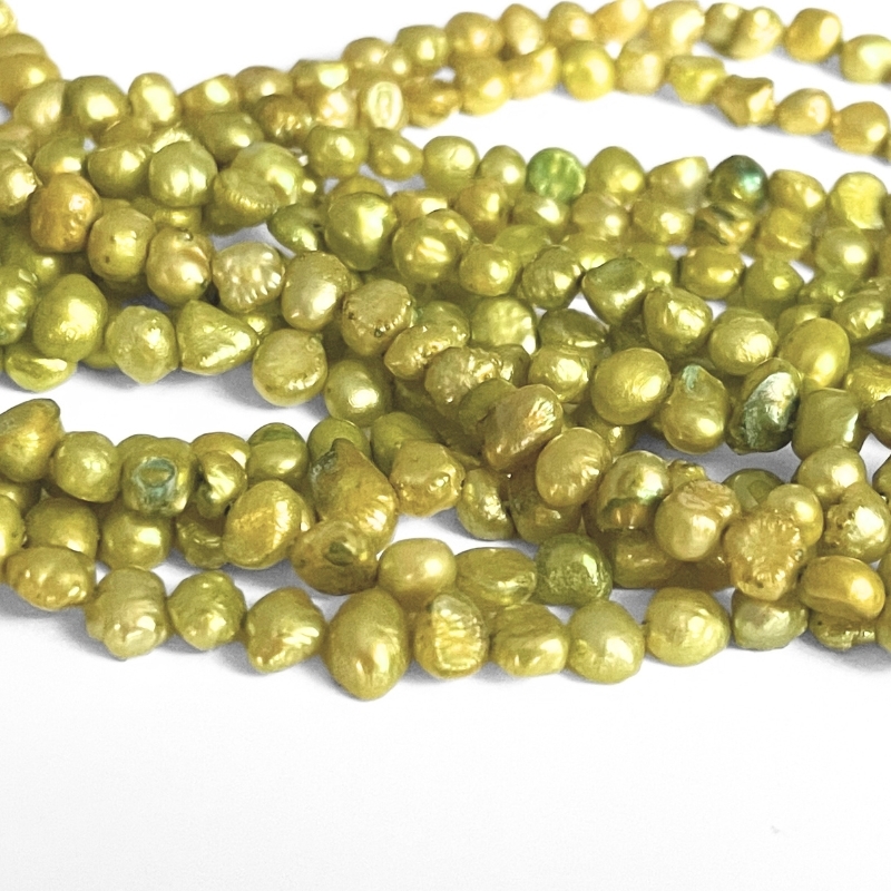 Det er barokke ferskvandsperler med naturlige former og tydelig variation i både størrelse og udseende.
