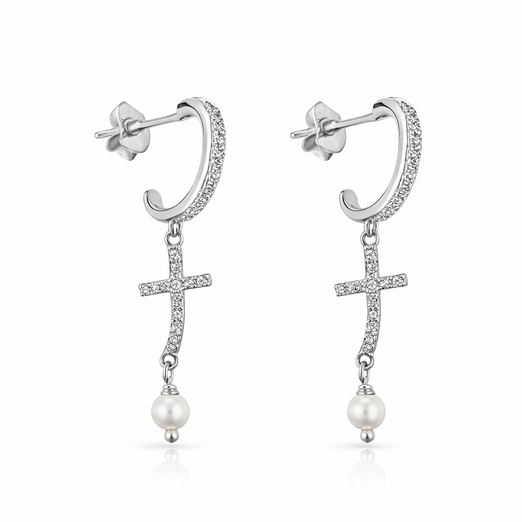 Sterling sølv Hoops med rhinsten, sølv kors med sten og perle vedhæng