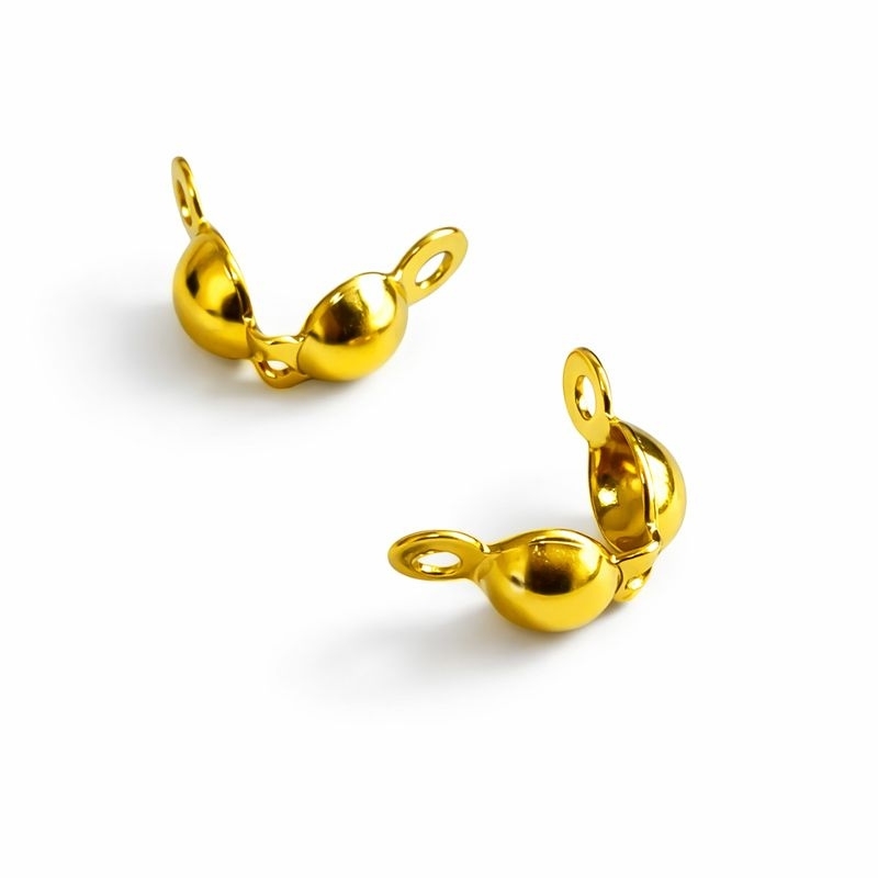Smukke og funktionelle knudeskjulere – også kaldet perlekædeafslutninger eller endedupper – i forgyldt Sterling sølv. Disse bruges til at skjule knuder eller wireklemmer i afslutningen af smykker som perlekæder og armbånd.