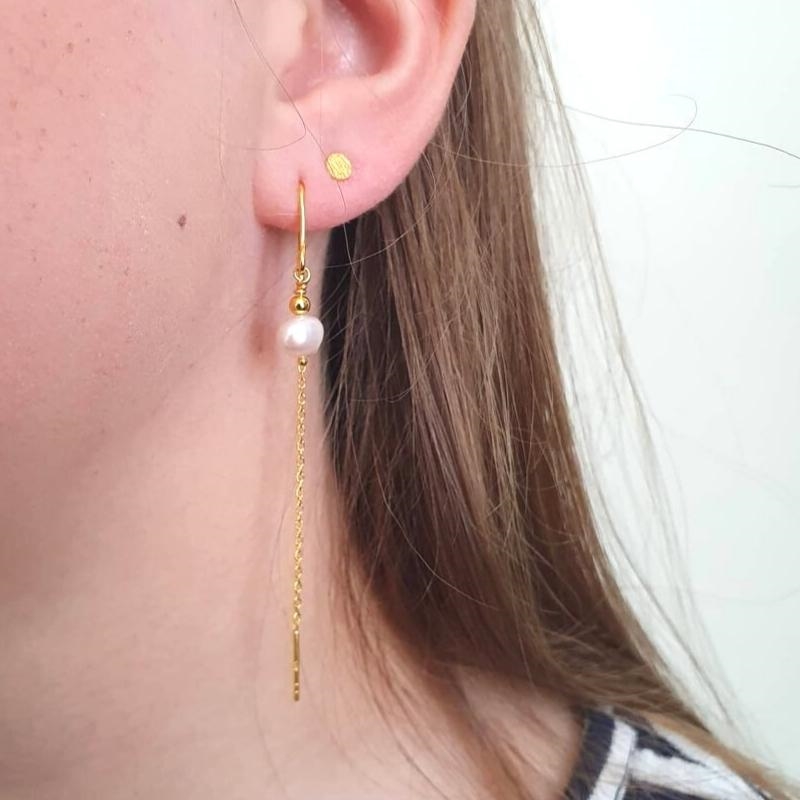Lang forgyldt kædeøreringe med perle