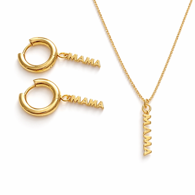 Halskæde med MAMA vedhængØreringe med MAMA vedhæng