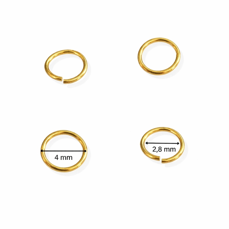 De små åbne øskner i forgyldt sterling sølv er en praktisk basisdel, som bruges til at forbinde dele i dine smykker – f.eks. låse, kæder, charms eller perler med øsken. De måler 4 mm udvendigt og 2,8 mm indvendigt, og tråden er 0,6 mm tyk, hvilket giver en fin balance mellem styrke og diskretion. De kan åbnes med en tang, og lukkes tæt igen, når du har samlet delene. Forgyldningen giver en varm guldfarve, som passer godt sammen med både andre forgyldte dele og ægte guldsmykker. Brug dem til halskæder, armbånd, øreringe eller hvor du har brug for at forbinde små dele på en pæn og enkel måde.