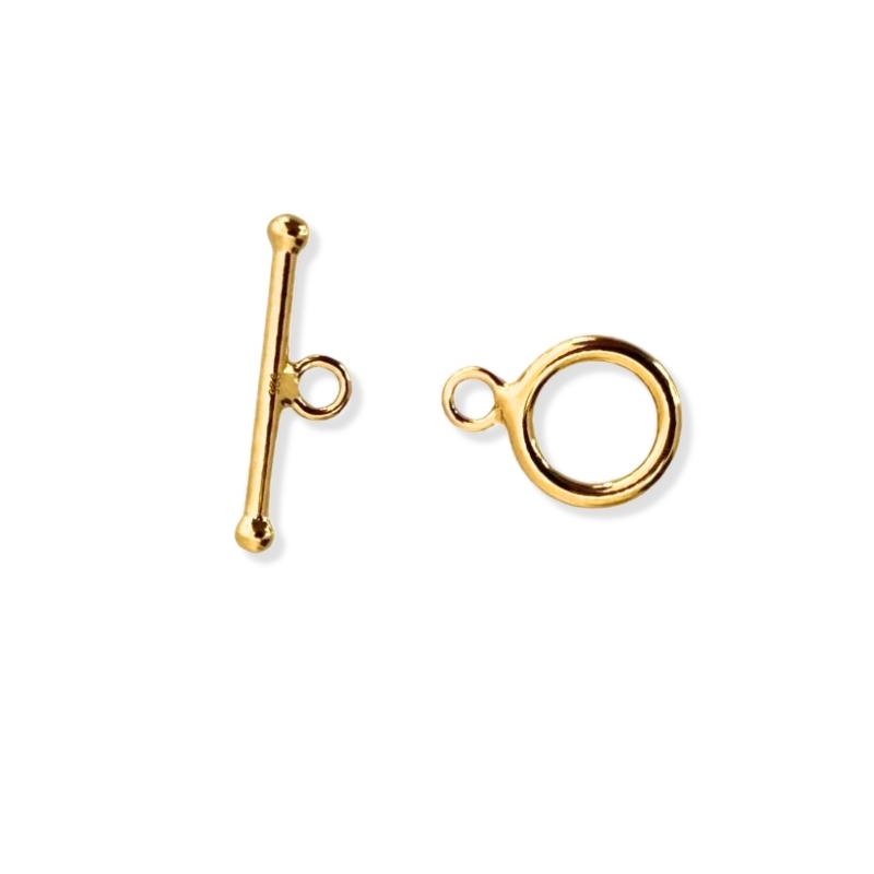 Denne bidsellås i forgyldt sterling sølv er belagt med 24K guld, hvilket giver en smuk gylden glød. Låsen består af en rund ring og en lige pal, der føres igennem ringen og holder smykket sikkert samlet. Den er nem at åbne og lukke selv, hvilket gør den praktisk til daglig brug. Overfladen i 24K guld passer flot sammen med både kæder og perler og giver smykket et roligt, klassisk udtryk.