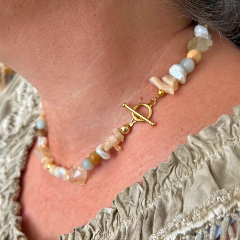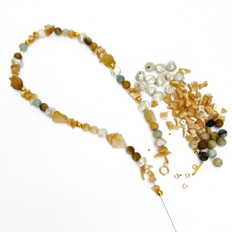 🌿 Saml et smykke med varme farver og rå natursten – perfekt til dig, der vil lave noget unikt