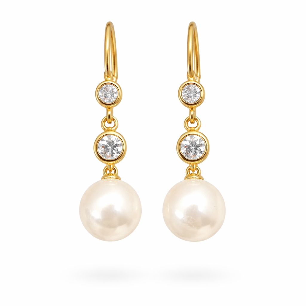 Forgyldt sterlingsølv Øreringe med shellpeals og rhinsten