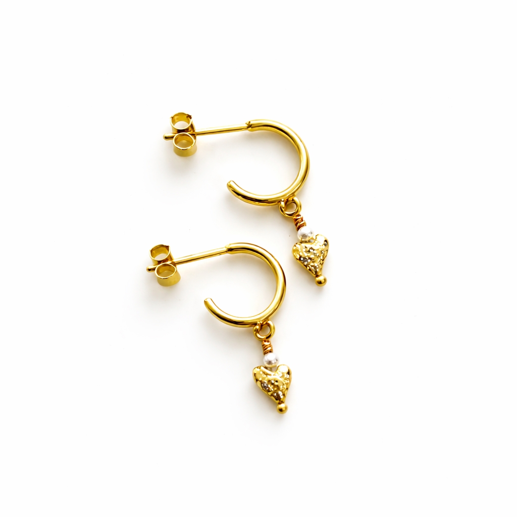 Inspiration til øreringe lavet med rustikke små hjerter i forgyldt sterling sølv