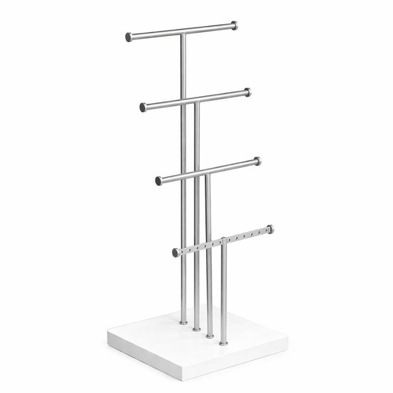 Smykkestativ i sølvgrå med hvid fod