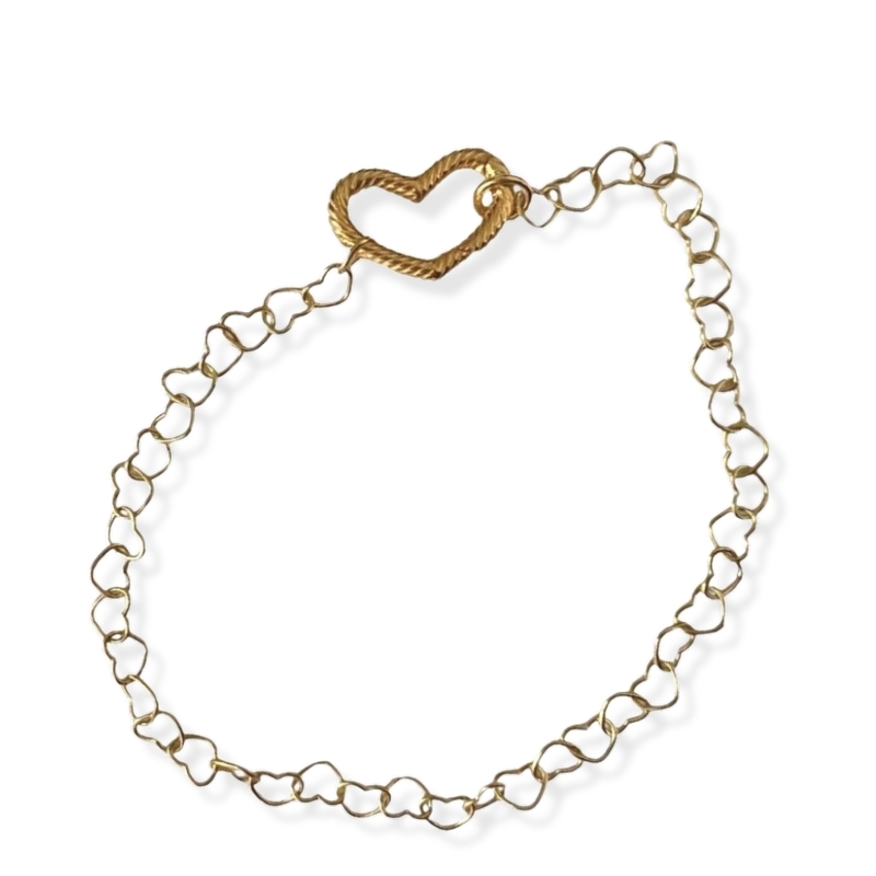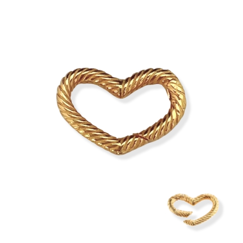 Denne snoede hjertelås i forgyldt sterling sølv fungerer både som en solid lås og som et fint dekorativt element i dit smykke. Den har et snoet design, der giver struktur og spil i overfladen, og den gyldne forgyldning gør den velegnet til smykker i varme toner. Låsen åbnes ved at trykke det lille stykke ind, så den er nem at bruge, også når du selv skal tage armbånd eller halskæde af og på.