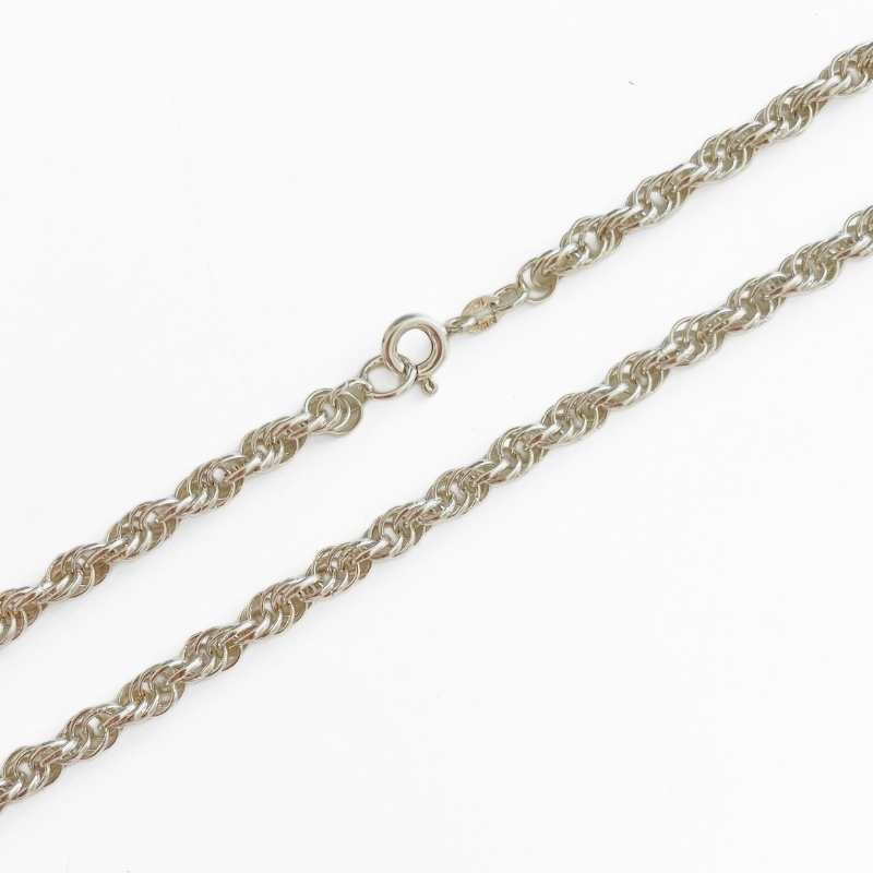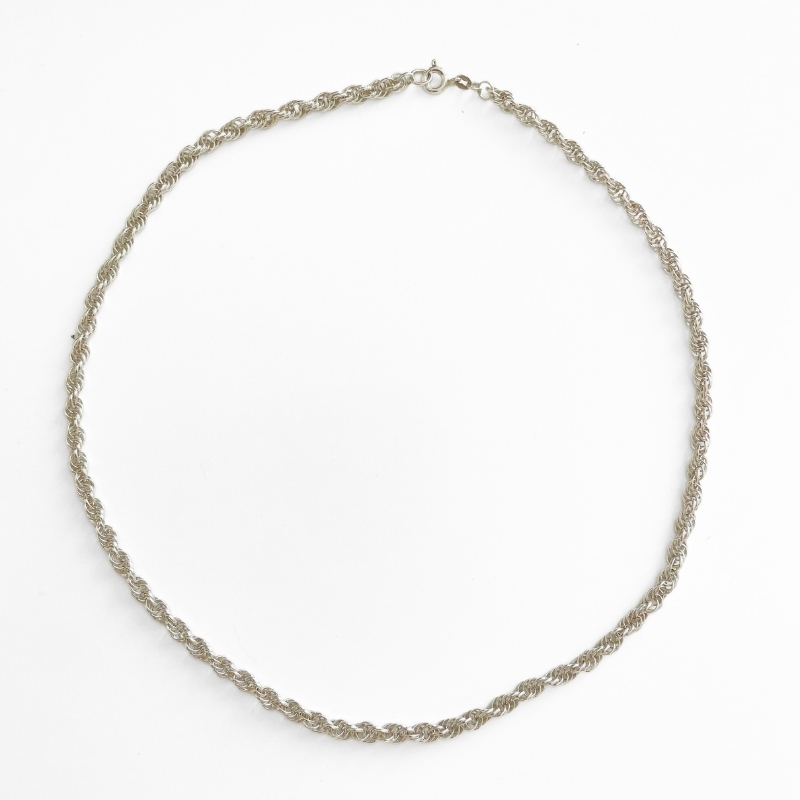 Den her sølvfarvede kæde har en snoet struktur, som giver et roligt og klassisk udtryk. Låsen er en rund fjederlås, der er nem at åbne og lukke, og kæden ligger pænt mod huden uden at vride sig. Overfladen har en let blank glans, som passer godt til både hverdagsbrug og til at sætte små vedhæng på. En solid og alsidig kæde, der kan bruges, som den er, eller som base i egne smykkedesigns.