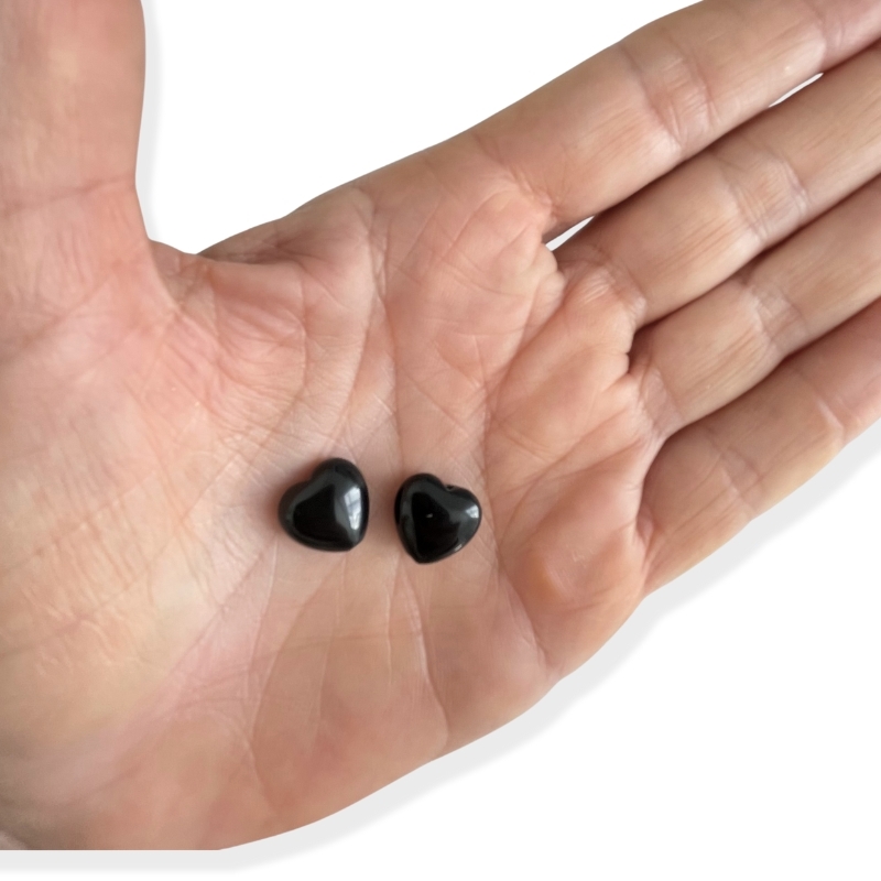 Disse små hjerter er lavet af sort onyx, en klassisk sten med en jævn og dyb farve. Formen er enkel og symmetrisk, hvilket gør dem nemme at indarbejde i forskellige designs. Med deres blankpolerede overflade får de et glat og roligt udtryk, der står flot alene eller i kombination med andre sten. Det vertikale hul gør dem nemme at bruge direkte på en snor, kæde eller stift.