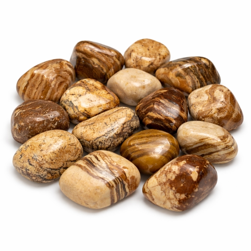 Jaspis landskab, også kaldet Kalahari jaspis eller picture jasper, er kendt som en sten for harmoni, udvikling og forståelse. Den siges at fremme kreativitet, overblik og give klarhed i forhold til ukendte eller udfordrende situationer. Mange ser den som en støttesten, der giver jordforbindelse og ro, når man står over for nye muligheder eller forandringer.