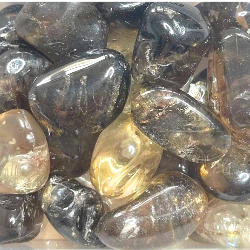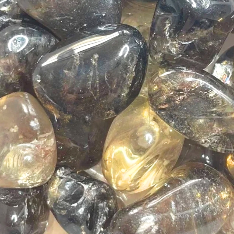 Røgkvarts er en af de mere rolige sten – både i farve og udtryk. Den varierer fra næsten gennemsigtig til mørk røgfarvet og har tit små indre skygger eller lysreflekser, der giver den liv. Mange bruger den som lommesten, især når der er brug for at finde lidt mere ro, tyngde eller klarhed midt i alt det, der sker.