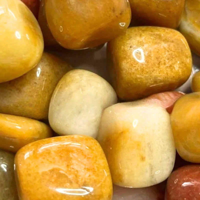 Orange jade forbindes ofte med energi, livsmod og lyst til handling. Det er en type farvet kinesisk jade, som varierer fra lys gul til varm orange og nogle gange helt over i rødbrune toner. Farverne ligger i rolige bånd og spil, og hver sten har sit helt eget udtryk.