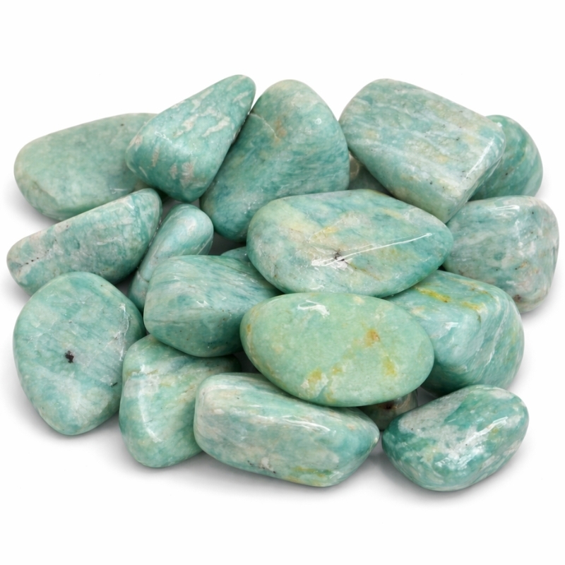 Amazonit forbindes ofte med ro, balance og klar kommunikation. Den siges at kunne dæmpe uro og hjælpe med at skabe overblik i perioder med mange tanker. Mange bruger den som en støtte i hverdagen eller i forbindelse med meditation.