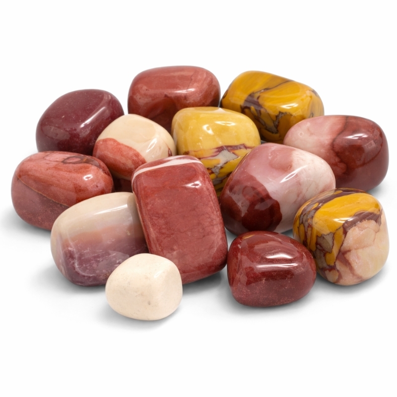 Mookait er en farverig jaspis fra Australien med varme jordtoner. Den kan være dyb rød, sennepsgul, brun eller en blanding af det hele i samme sten. Nogle har tydelige felter, andre bløde overgange. Hver sten er forskellig og har sit eget udtryk.